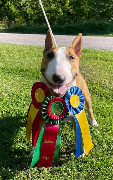 Discover the strength, elegance, and loyalty of our Bull Terriers, raised in a loving home environment dedicated to their health, temperament, and companionship.